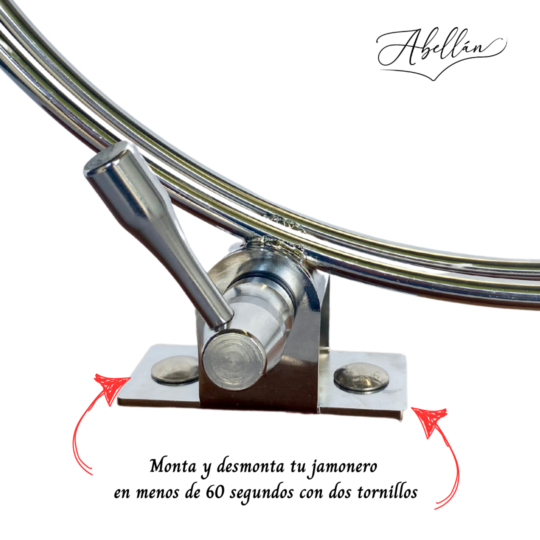 El jamonero Geovany Élite de Jamoneros Abellán representa la cúspide de nuestra innovación y experiencia en el arte del corte de jamón. Diseñado para cortadores profesionales y academias de formación, es la elección preferida por expertos como Geovany Almanza, maestro cortador y embajador de nuestra marca.